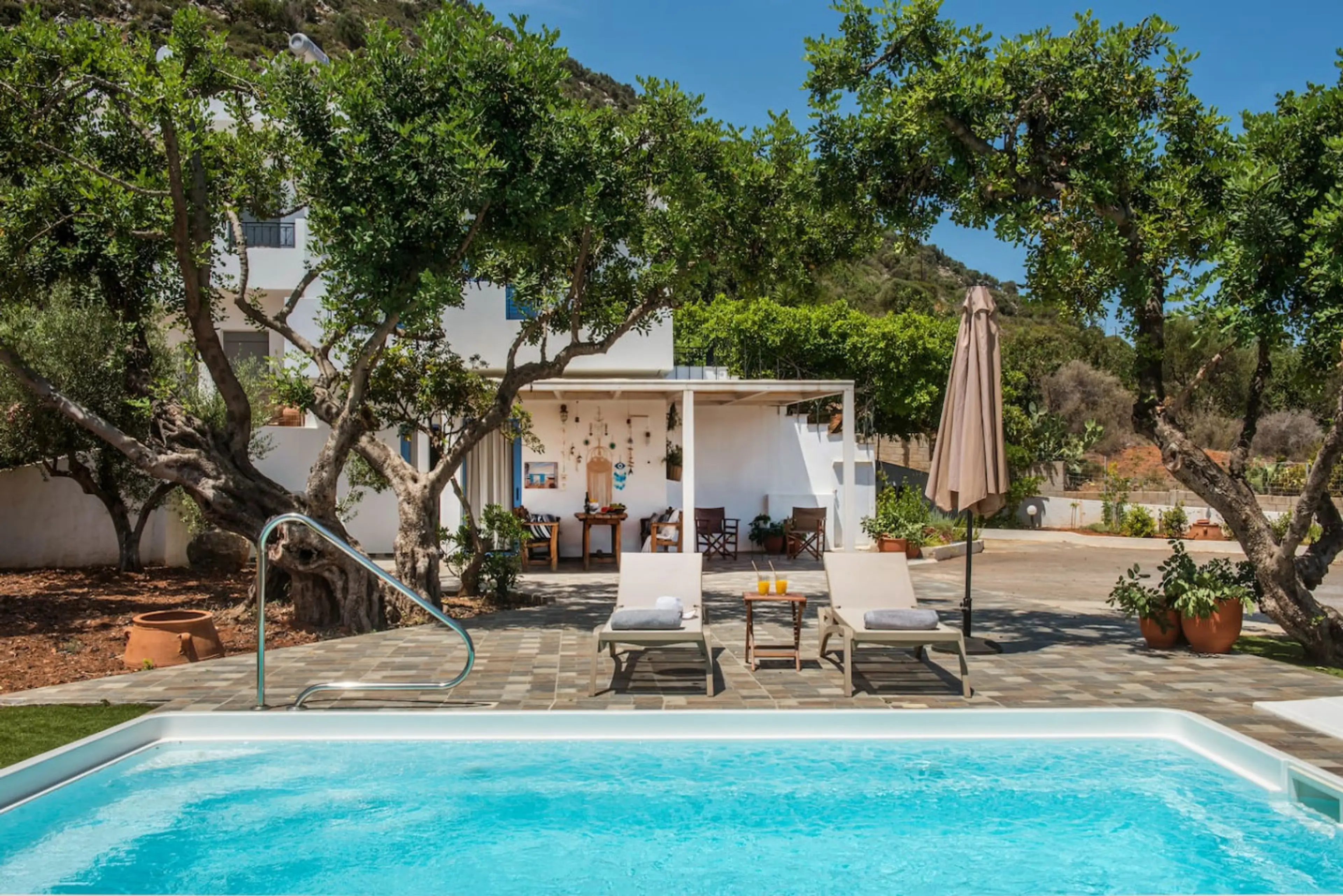 Escape to our serene villa with stunning Mediterranean views, perfect for couples or families with young children . Enjoy a private pool, hammock under mature trees, and spacious patio with BBQ for al fresco dining. The villa features a plush king-sized bed, modern kitchen , and a cozy living area. ...